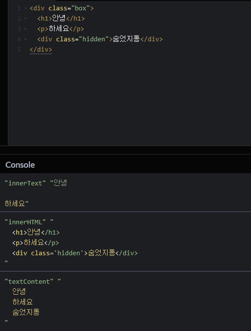 태그 안의 모든 (=눈에 보이지 않는) 텍스트 반환